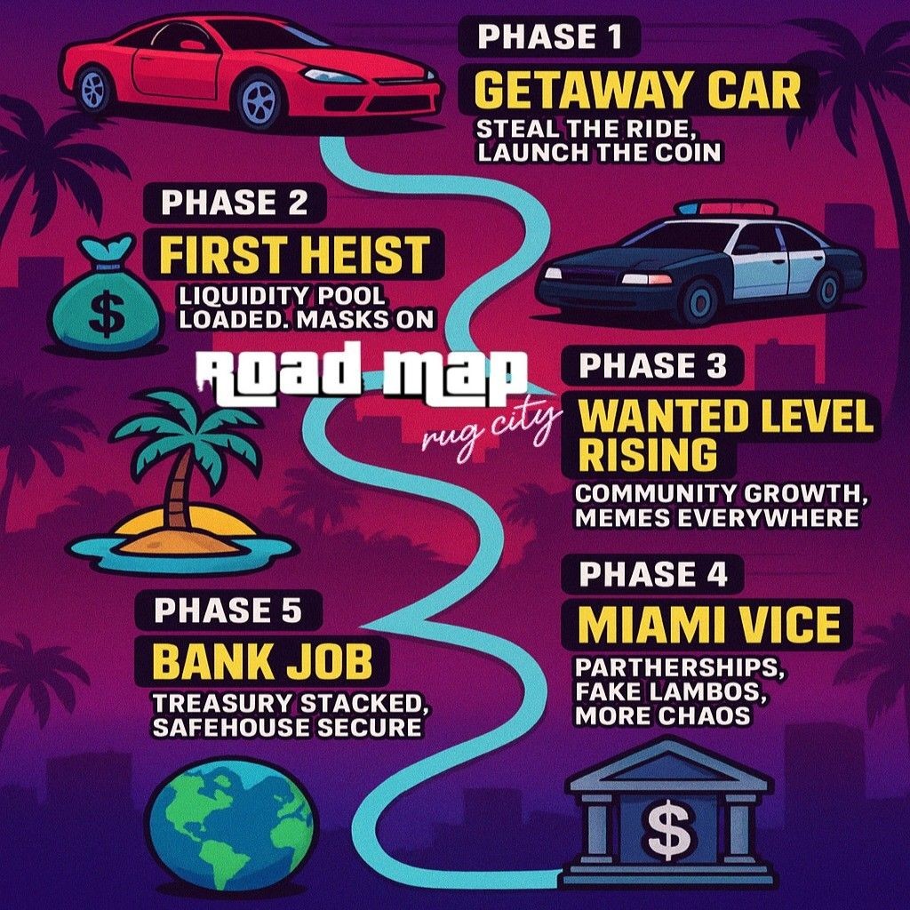 If you're tired of projects acting like they're legit, you're in the right place. $GTARC is the coin for the Greedy, the reckless, and the Thieving A$$hole$ who know the game ain't about trust - it's about survival. So load up, cash in, and don't ask questions. Because in Rug City...everyone's guilty.